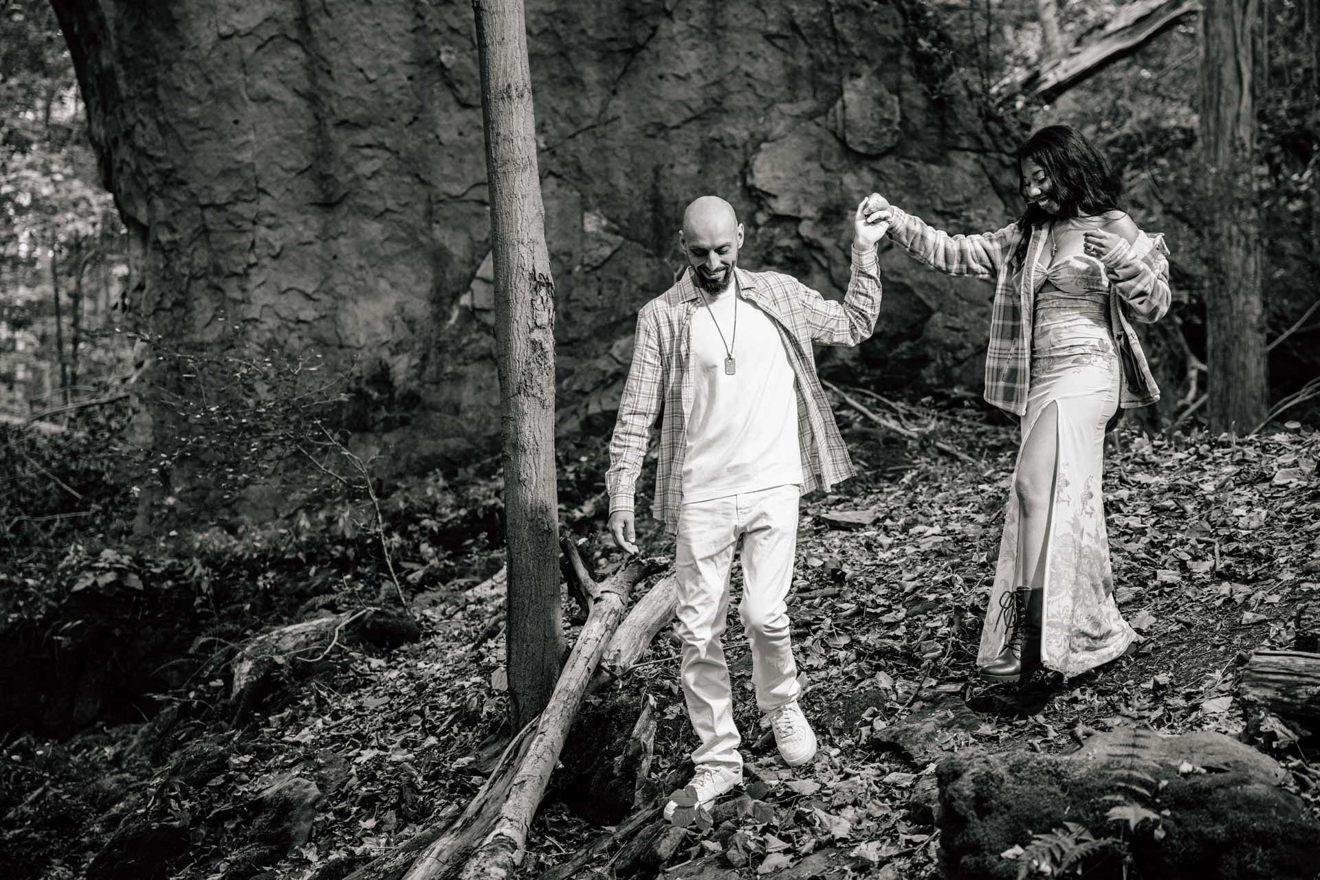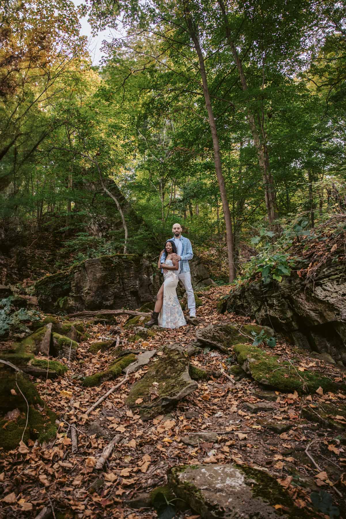 This engagement photo session happened after a 30 minute hiking in order to get to this breathtaking location. A riverside engagement photo shootturned out into something special. Flowing water and the nature colours created a calm, intimate atmosphere where genuine moments unfold effortlessly.