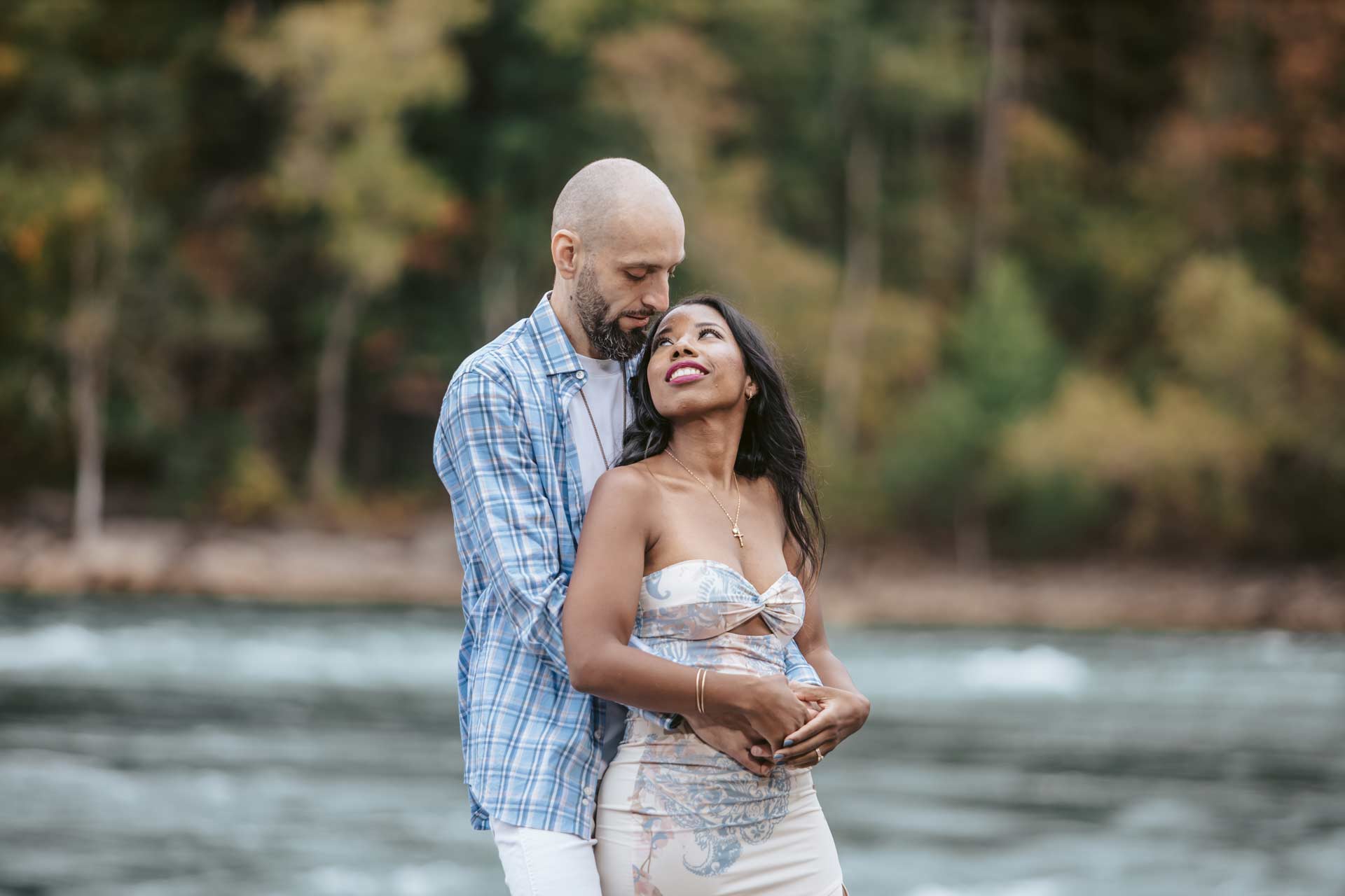 This riverside engagement photo session was filled with natural light, quiet moments, and genuine connection. We spent the time along the riverbank, capturing those special shots as well as the candid intimate moments. The gentle movement of the river created a peaceful backdrop, allowing real emotions and effortless interactions to unfold naturally.