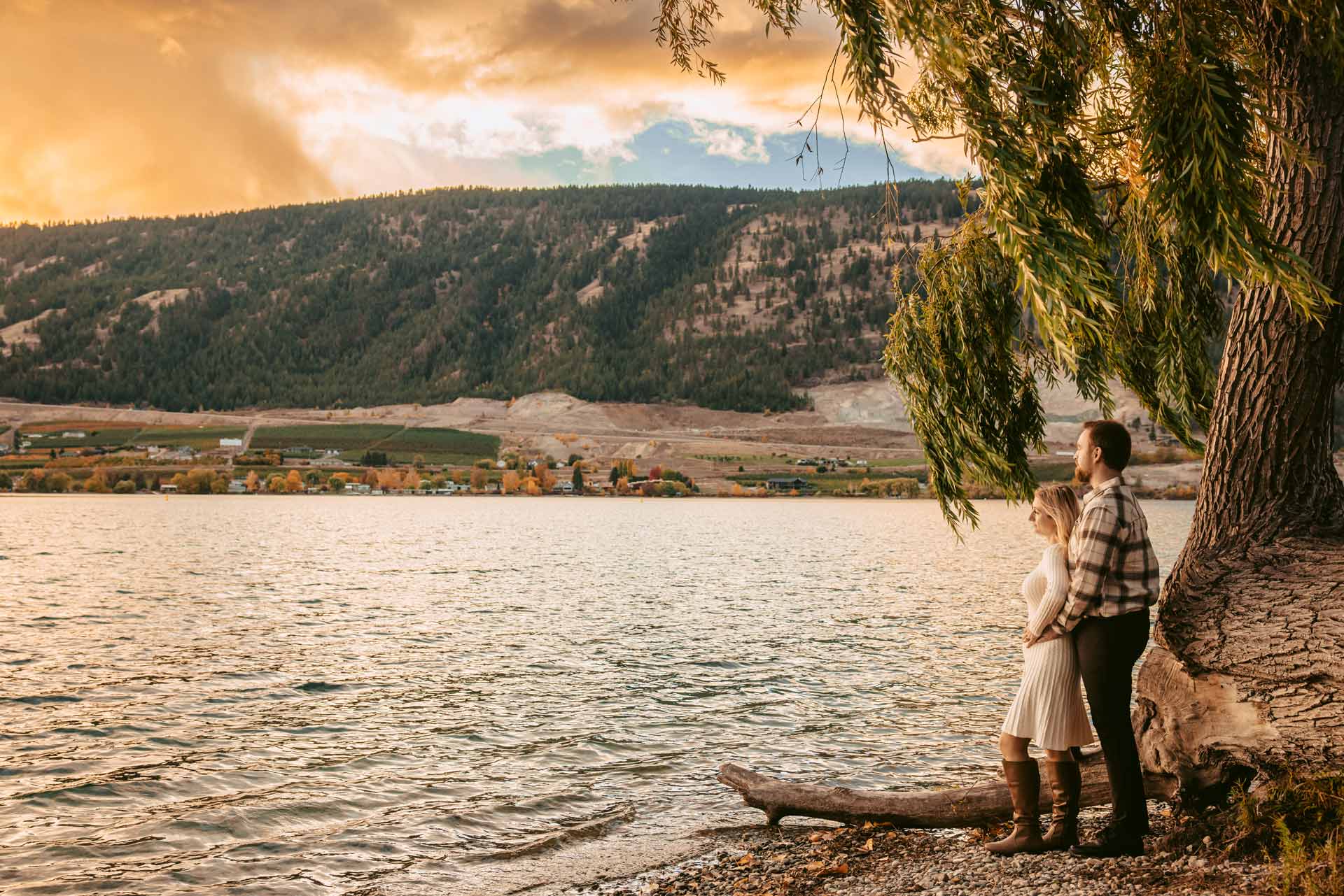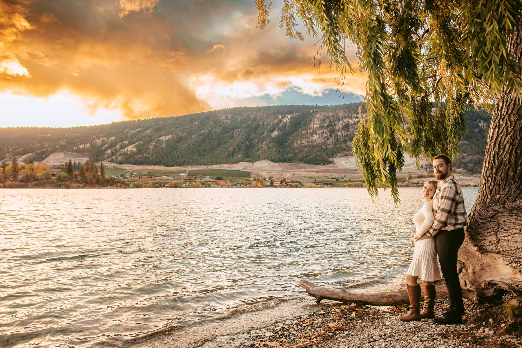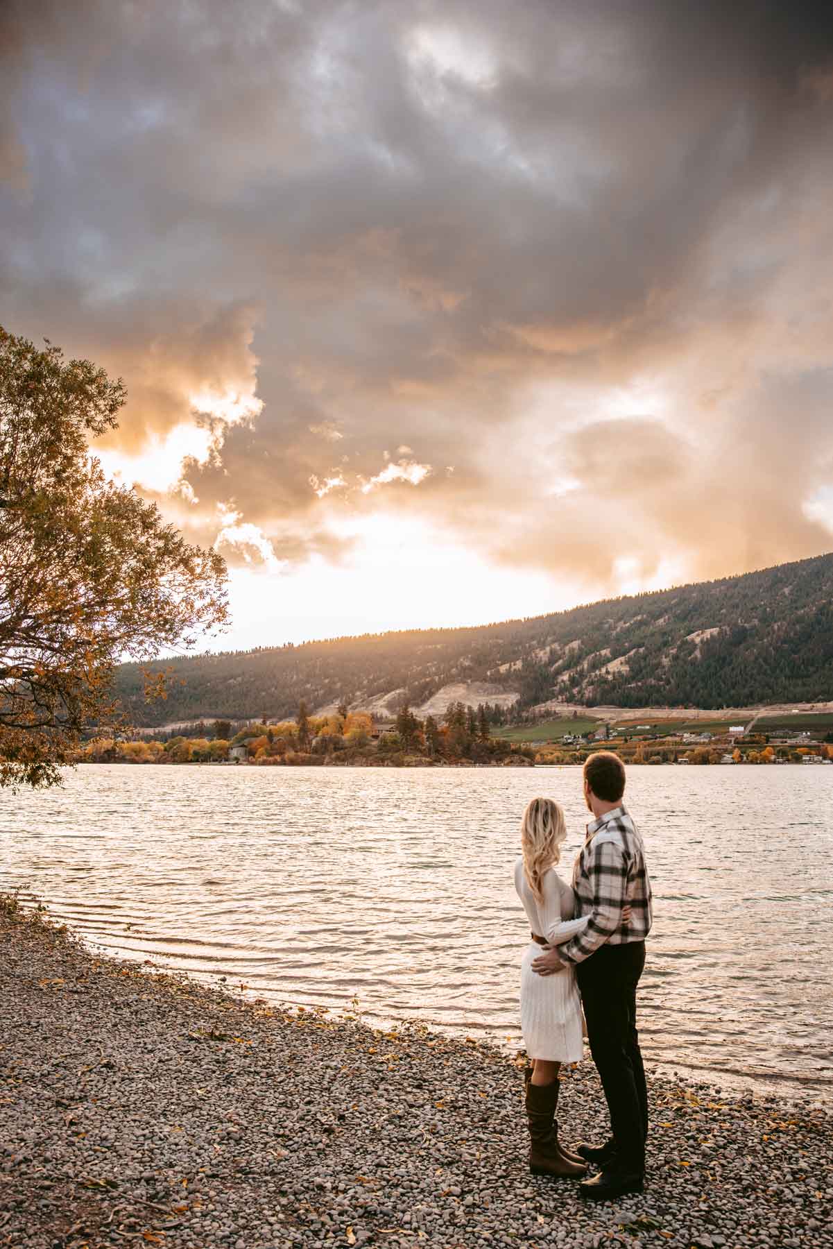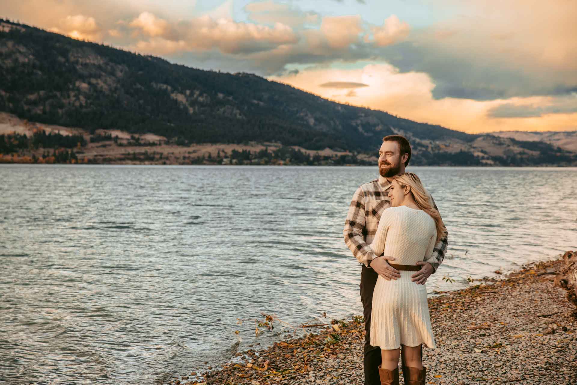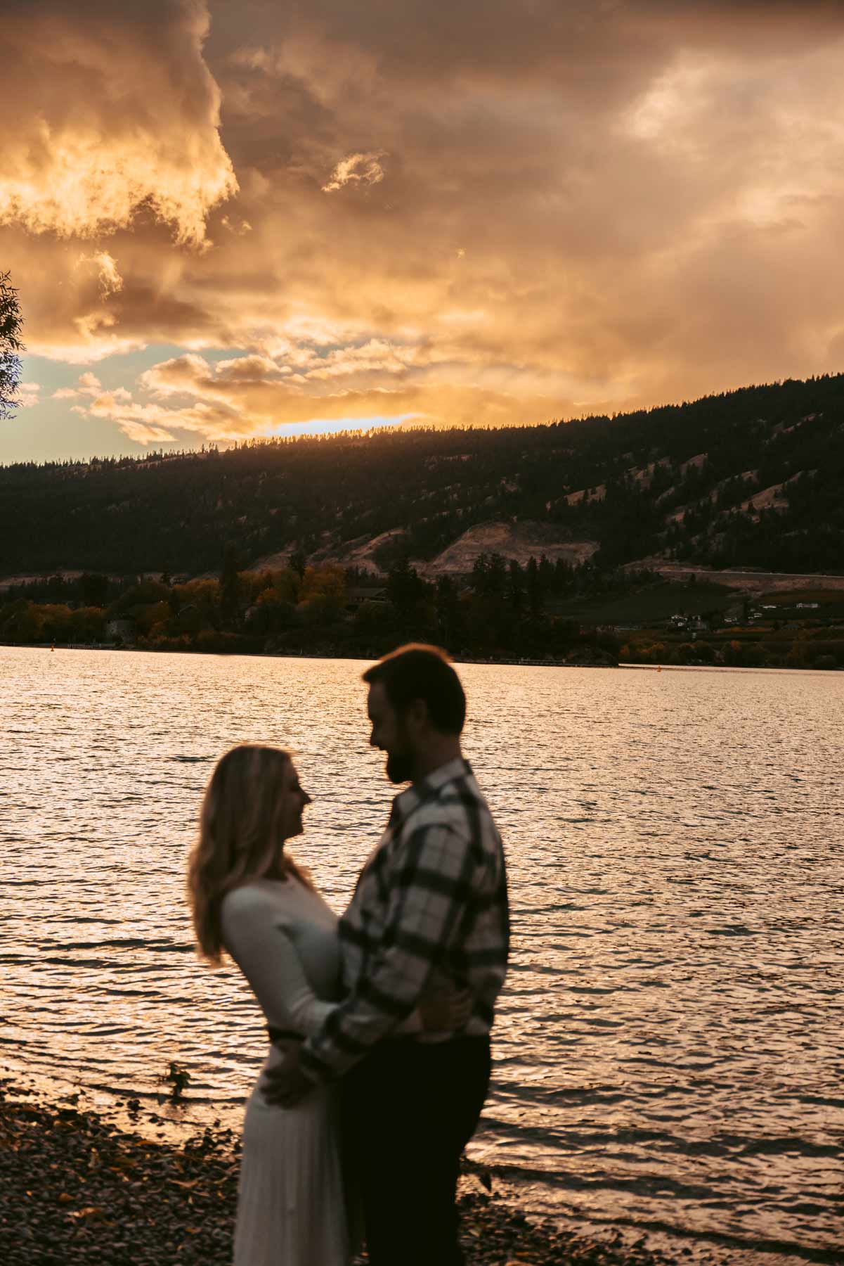 We recently photographed the most breathtaking sunset engagement session at Kaloya Regional Park in Lake Country, BC. The soft golden light over Okanagan Lake created a warm, romantic atmosphere that couldn’t have been more perfect for this couple’s photos.